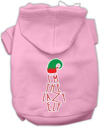 Christmas Pet Dog & Cat Hoodie Screen Printed, 'I'M The Lazy Elf' Light Pink Xs (0-3 Lbs.)