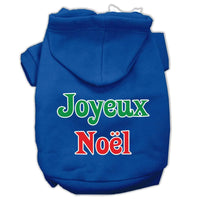 Christmas Pet Dog & Cat Hoodie Screen Printed, Joyeux Noel Blue XL (14-20 lbs.)