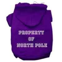 Christmas Pet Dog & Cat Hoodie Screen Printed, Property of North Pole Purple XS (0-3 lbs.)