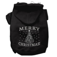 Christmas Pet Dog & Cat Hoodie Screen Printed, 'Shimmer Christmas Tree' Black Xs (0-3 Lbs.)