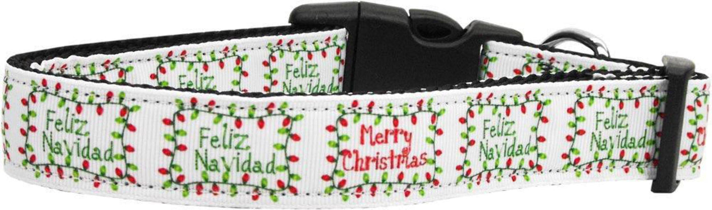 Christmas Pet Dog & Cat Nylon Collar or Leash, "Feliz Navidad" Cat Collar