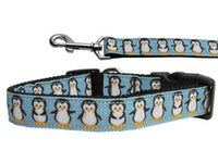 Christmas Pet Dog & Cat Nylon Collar or Leash, "Penguins" XL Collar