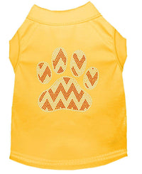 Christmas Pet Dog & Cat Shirt Rhinestone, 'Candy Cane Chevron Paw' Yellow Md (6-10 Lbs.)