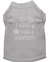 Christmas Pet Dog & Cat Shirt Rhinestone, 'Yes, I Want To Build A Snowman' Gray 3Xl (25-35 Lbs.)