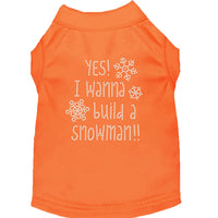 Christmas Pet Dog & Cat Shirt Rhinestone, 'Yes, I Want To Build A Snowman' Orange Lg (10-14 Lbs.)
