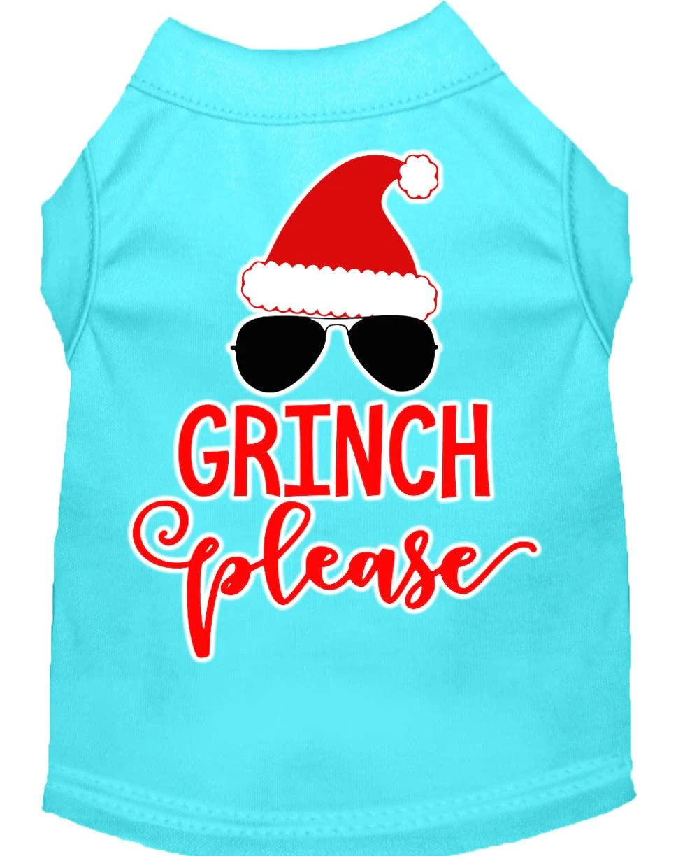Christmas Pet Dog & Cat Shirt Screen Printed, 'Grinch Please' Aqua 3Xl (25-35 Lbs.)