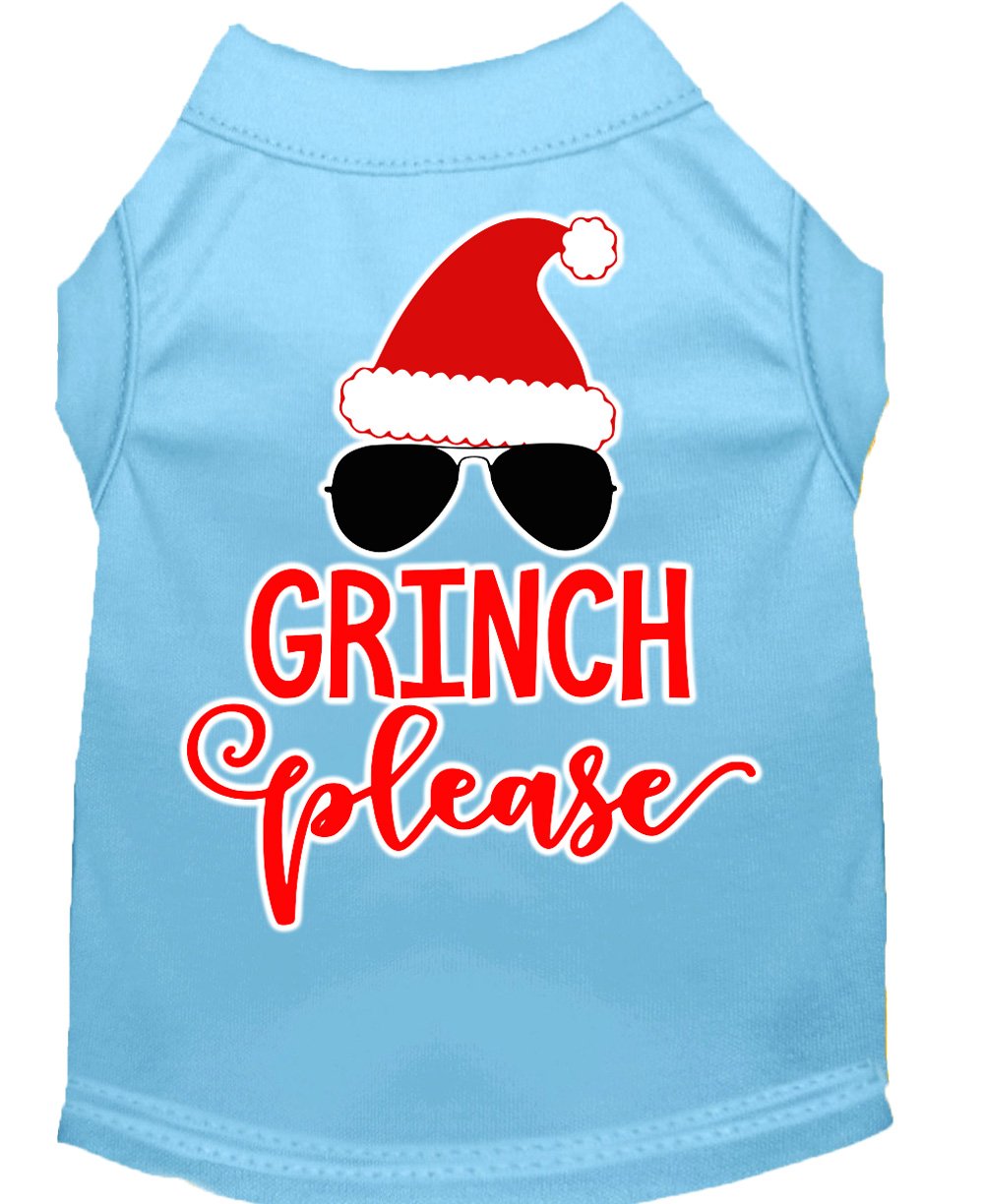 Christmas Pet Dog & Cat Shirt Screen Printed, 'Grinch Please' Baby Blue Lg (10-14 Lbs.)
