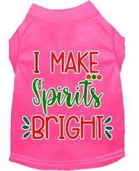Christmas Pet Dog & Cat Shirt Screen Printed, "I Make Spirits Bright" Bright Pink MD (6-10 lbs.)