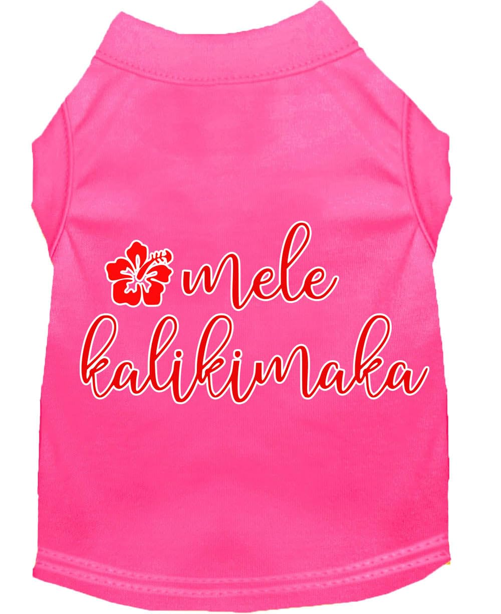 Christmas Pet Dog & Cat Shirt Screen Printed, "Mele Kalikimaka" Bright Pink LG (10-14 lbs.)