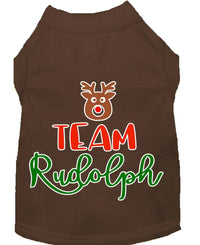 Christmas Pet Dog & Cat Shirt Screen Printed, "Team Rudolph" Brown XS (0-3 lbs.)