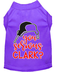Christmas Pet Dog & Cat Shirt Screen Printed, 'You Serious, Clark?' Purple Xl (14-20 Lbs.)
