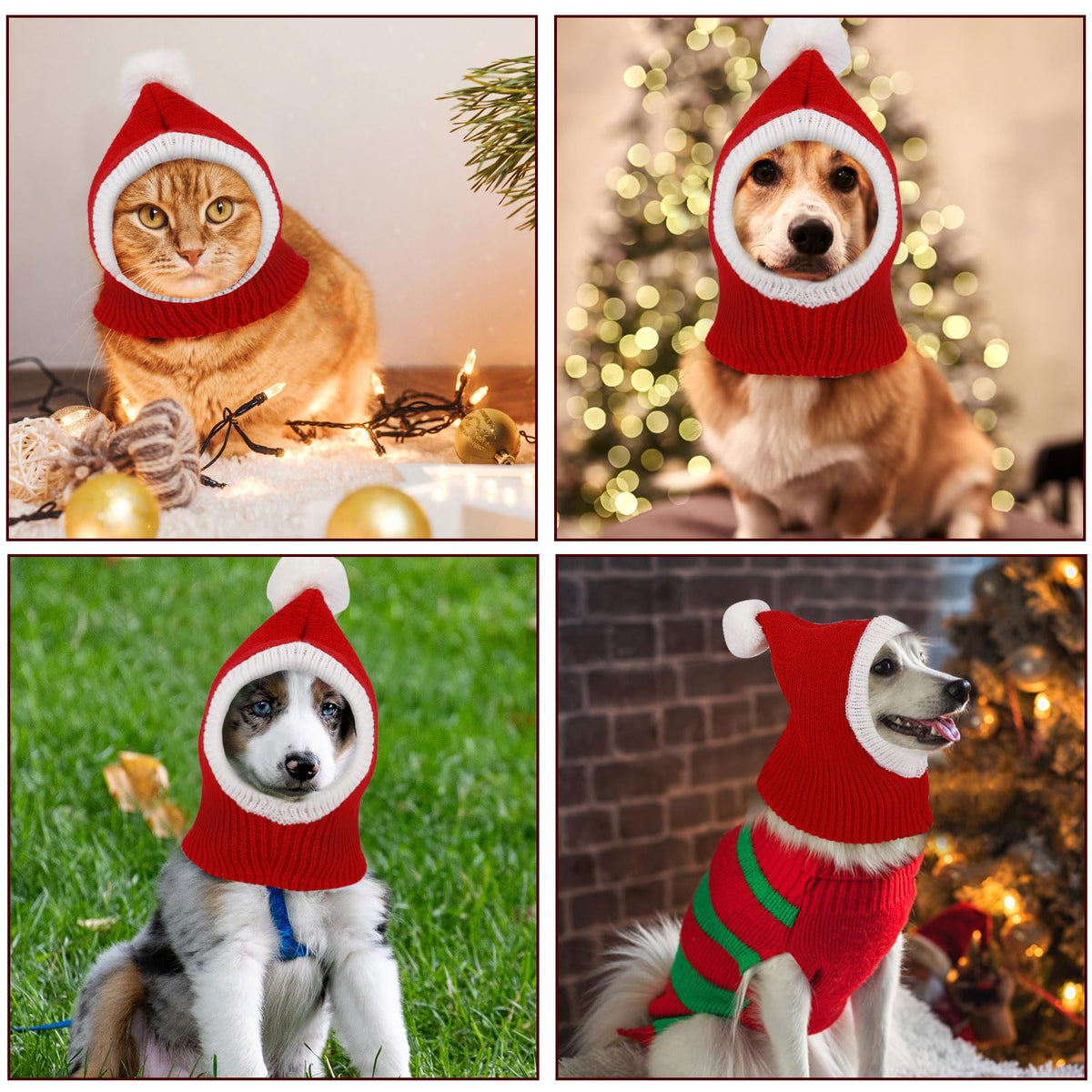 Christmas Pet Hat - Red Knitted Cat Santa Dog Hat, Warm Winter Neck Ear Warmer Headband Protector Costume Headwear for Pet Outfi