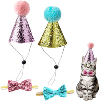 Christmas Pet Party Jazz Hat And Blingbling Bow Tie Breakaway Collar Set, Adjustable Headband For Kitten Puppy Small Dogs Cats (2/Lb-Pink2)