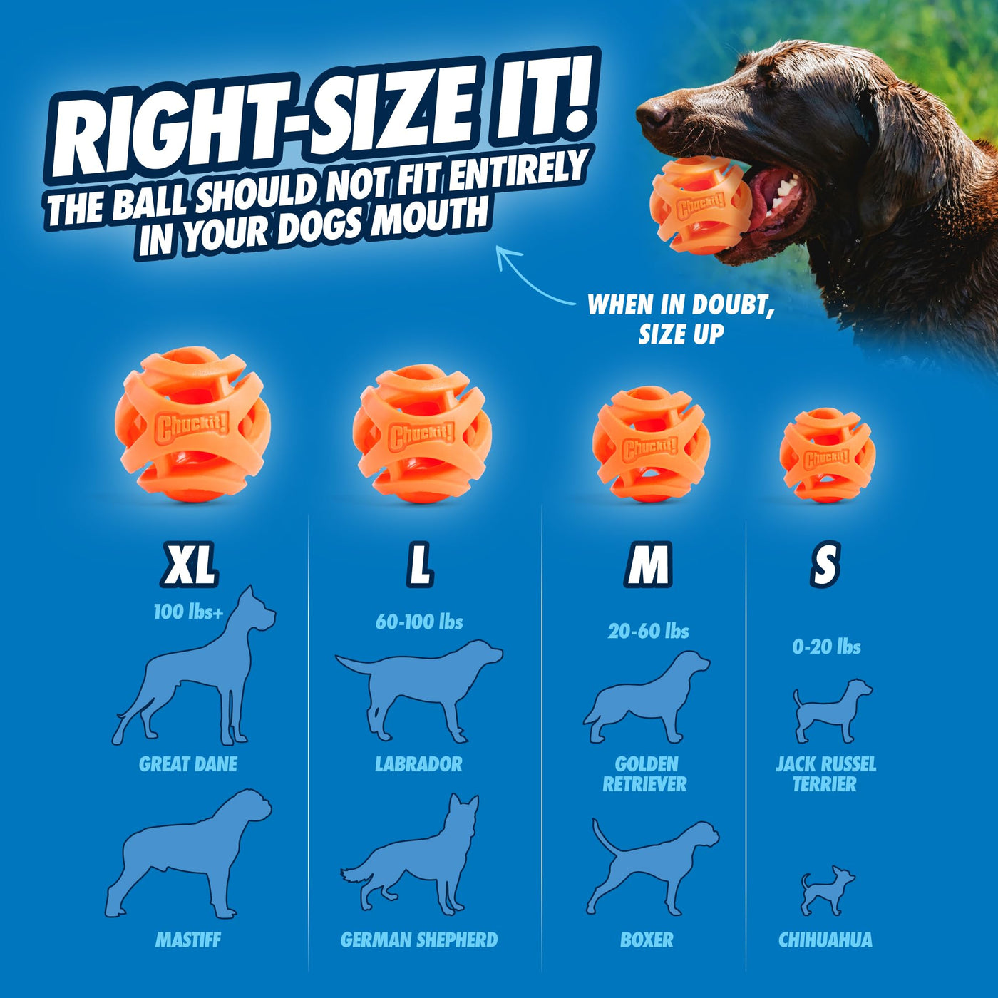 Q: What is the size of the Chuckit! Air Fetch Ball?A: The Chuckit! Air Fetch Ball is 3 inches in diameter, making it suitable for large dog breeds weighing between 60-100 lbs.