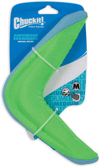 Chuckit Amphibious Boomerang Dog Toy is perfect for a game of fetch. The Chuckit Amphibious Boomerang is made specifically to fit our Chuckit Mega Ball Launcher (sold separately). The Boomerang is soft yet rugged constructed of rubber. This floating toy is ideal for the lake beach pool pond or just a day at the park. Comes in assorted colors please allow us to choose for you.