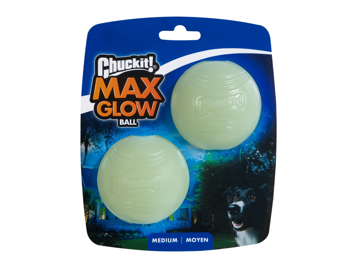 Chuckit! Glow In The Dark Bouncy Balls - Ball For Dogs, Chuckit Dog Toy, Max Glow Balls - Medium, 2.5 Inch Pack Of 2