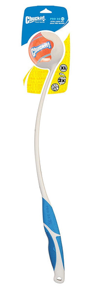 The Chuckit! Is One Sweet Way To Exercise Your Dog...Without Wearing Out Your Arm. With The Chuckit!, You Can Throw That Ball Out Of The Ballpark Over And Over Again. Use It In The Park, In Your Backyard, Or Anywhere There Is Plenty Of Room. Made Of Lightweight, Durable Plastic, The Chuckit! Uses Extra-Large Size Chuckit! Ball And Is Designed For Hands-Free Pickup... So You Never Have To Bend Down And Pick Up A Slimy Ball Again. Instructions: Find An Open Area, Away From People, Animals And Buildings. With The Ball In The Chuckit!, Grip The Handle Firmly. Extend Your Arm Back Over Your Shoulder Until The Ball Is Behind You. Then Swing It Forward In A Smooth Arc And Follow Through. The Ball Will Release When You Swing It Fast Enough. The Extra-Large Ball Launcher Is An Extension Of The Pro Launcher Line For Larger Dogs; It Is A High Performance Launcher With Improved Grip For Control And Comfort. Item Comes In Assorted Colors