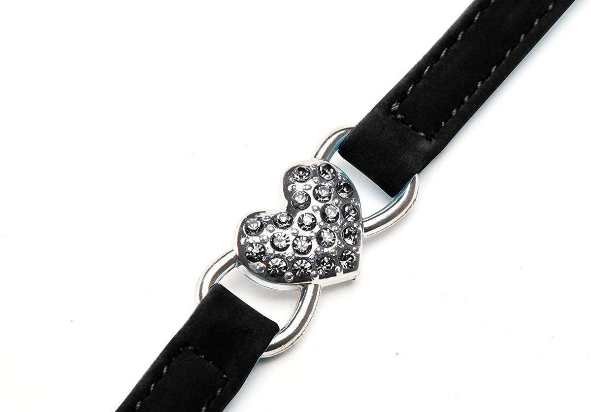 Chukchi Pink Soft Velvet Safe Cat Adjustable Collar With Crystal Heart Charm And Bells 8-11 Inches(Black+Red)