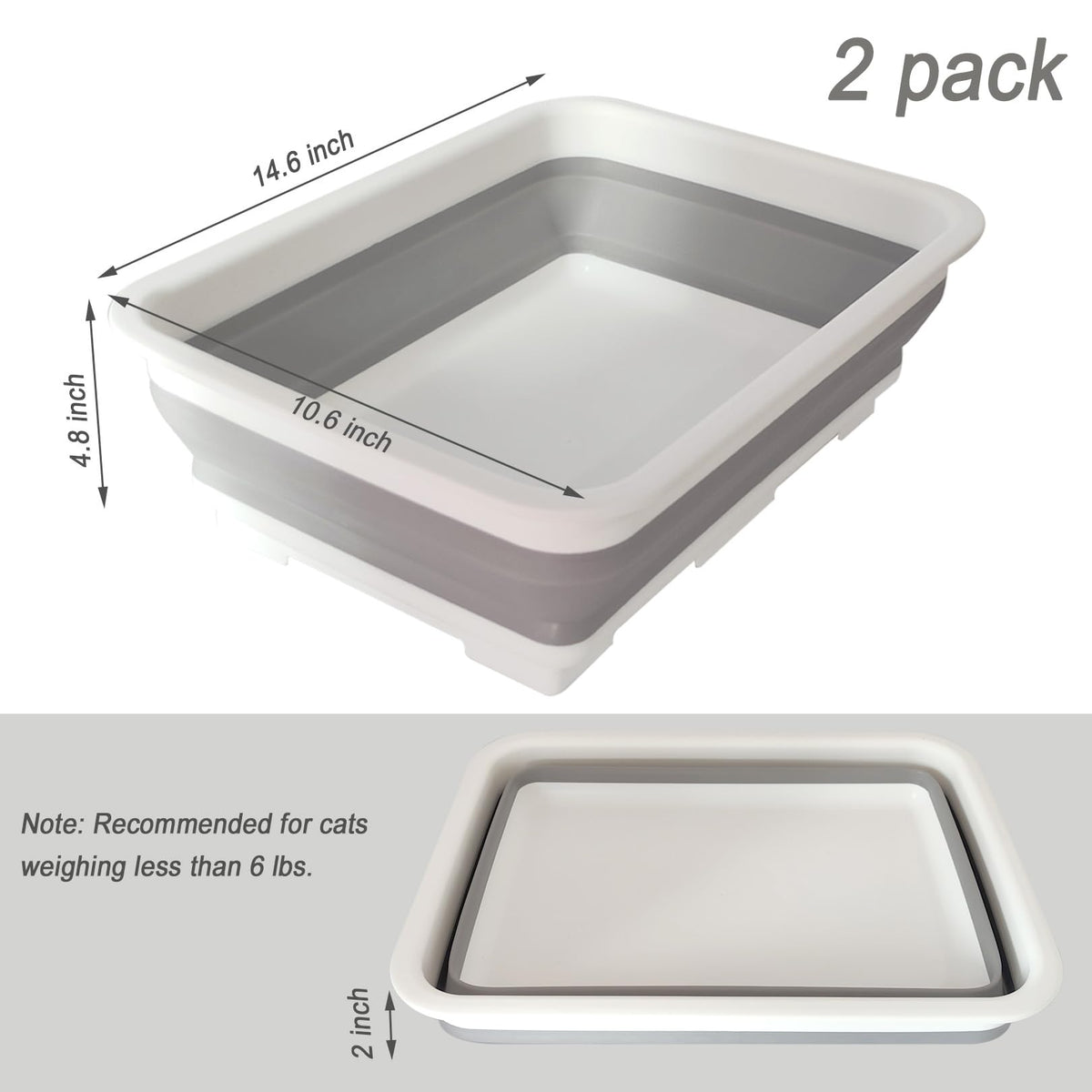 Chuyouan 2 Pack Collapsible Small Cat Litter Box, Open Kitten Litter Potty Pan Low Entry Pet Kitty Toilet Foldable Waterproof Tr
