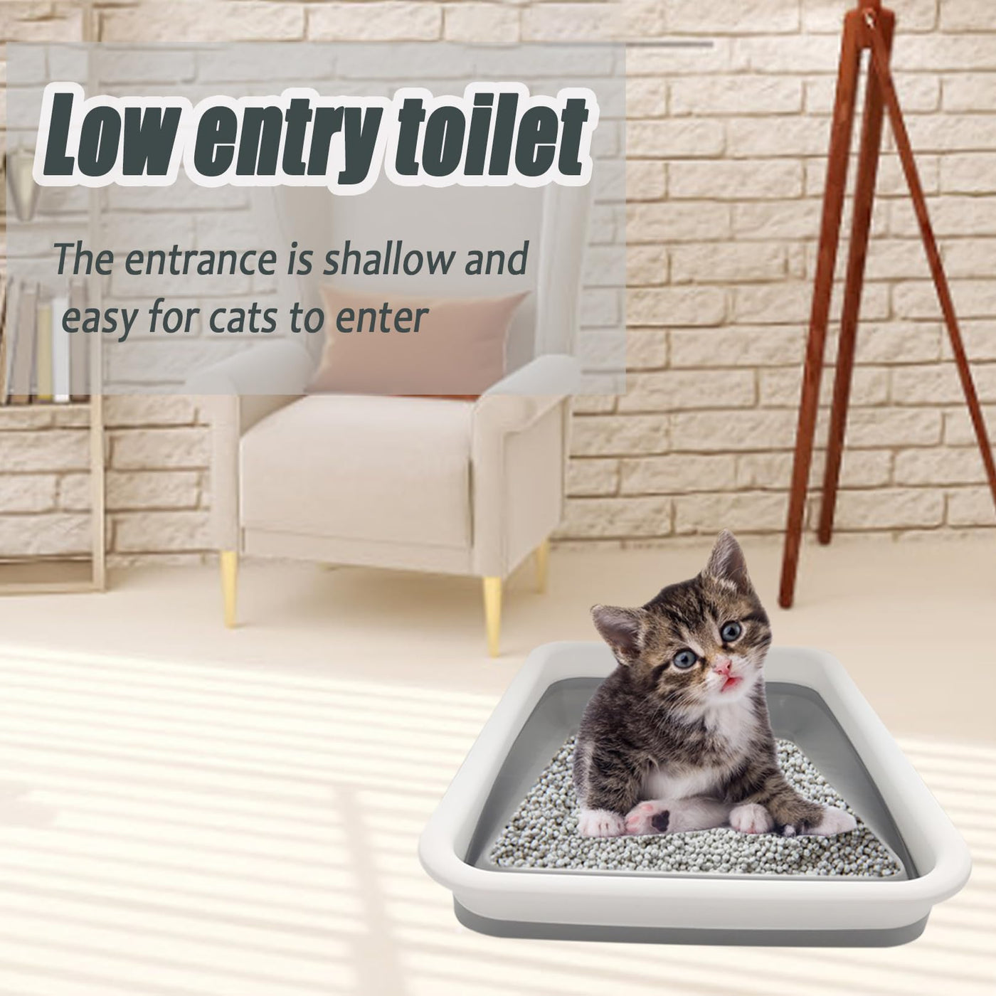Chuyouan Collapsible Small Cat Litter Box, 14.6 X 10.6 X 4.8 Inch Open Waterproof Low Entry Kitten Potty Pan Semi-Enclosed Pet T