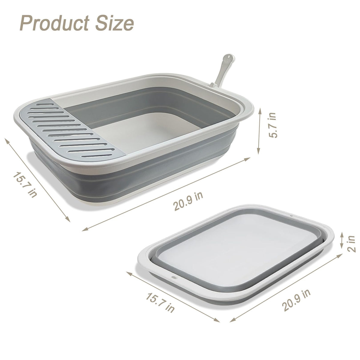 Chuyouan Senior Collapsible Cat Litter Pan - Low Entry, Foldable Pet Toilet for Elderly Cats, Grey, 20.9x15.7x5.7 inch