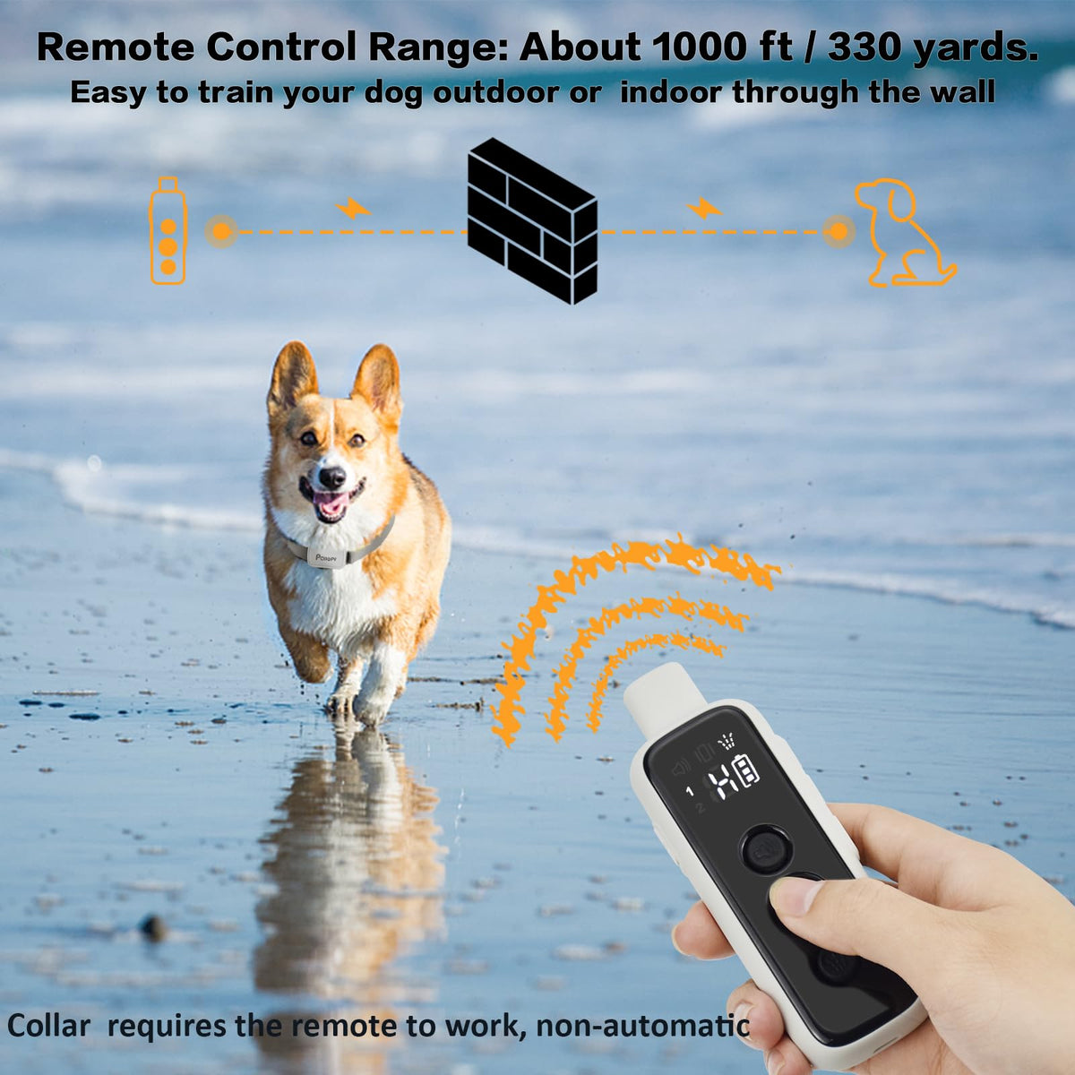 Note: This Collar Can Only Work With The Remote, Can'T Work Automatically When The Dog Barks. Poiiopy Citronella Spray Dog Collar With Remote Releases A Burst Of Citronella Spray In Front Of Dogs' Snout Through Pressing The Remote Buttons, To Distract Him From His Barking Behavior With No Side Effect, No Electric Shock, And No Hurt. You Can Control/Train 2 Dogs With Only One Remote! Main Features: * 1). Safe, Effective And Humane Dog Training Collar Without Electric Shock. * 2). 3 Training Modes: Citronella Spray, Vibration, Beep. * 3). High, Low Or No Spray, Three Modes Optional To Meet Your Needs. * 4). Rechargeable Li-Ion Battery Lasts Up To 11 Days For The Collar. * 5). Small Size And Adjustable Collar Fit For All Size Dogs Over 8Lbs. * 6). Remote Range Up To 1000 Ft / 330 Yards (May Be Shortened By Environmental Impact). * 7). Indicates Low Battery When The Red Light On The Receiver Flashes. * 8). Lcd Display To Show The Detail Information. * 9). Lightweight And Small- Only 100G And 5.7X3.3X2.8 Cm. * 10). Hight Capacity: Refill 25-30 Sprays Every Time (300-400 Sprays/Can). * 11). Note: Slight Rainproof Design Only For Light Rainy Weather Or Wet Grass Exposure, But Don'T Use It When Heavy Raining ,Swimming, Playing With Water,Or Soak In Water. * 12). Note: This Collar Can Only Be Controlled By The Remote, Can Not Spray Automatically When The Dog Barks. Important Note: How To Fill The Citronella Spray? Firstly, Turn Off The Collar. Set The Collar On A Flat Surface With The Refill Port Turned Upwards. Hold The Refill Spray Can Upright And Vigorously And Firmly Press The Nozzle Down Into The Refill Port. Hold Down Firmly For 15 Seconds And Then Release. Using Tips: 1. For Dogs With Long Furs, Trim The Furs Along The Spray Path For Effective Spray Range. 2. Our Bark Collar Is Suggested To Use For Dogs Over 6 Months And Over 8Lbs.