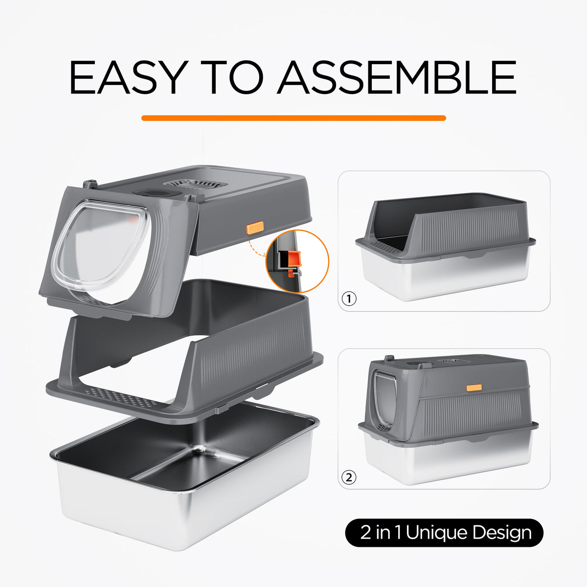 Citylife Stainless Steel Cat Litter Box With Lid,Xl Extra Large Enclosed Removable Metal Litter Box With Litter Scoop&Double Lay