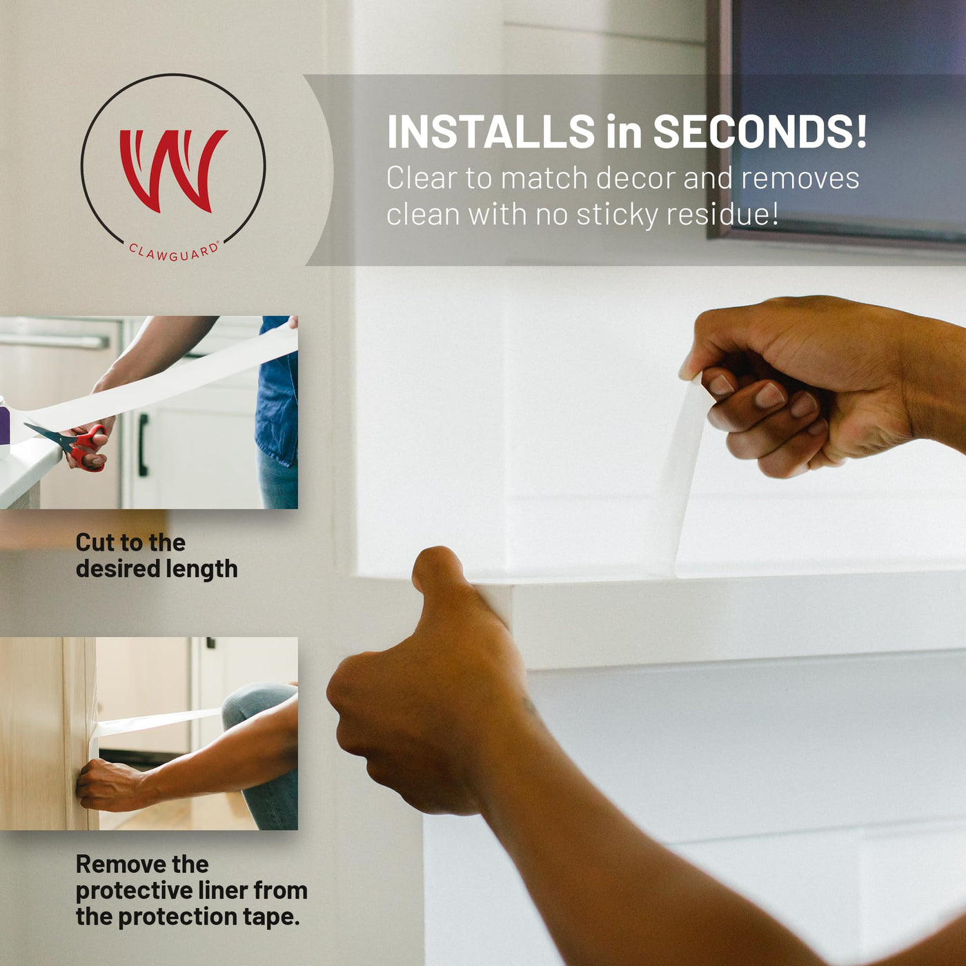 This Clawguard Bundle Pack includes 1 XL Roll of Dog Protection Tape and 1 XL Roll of Cat Training Tape. Clawguard Protection Tape is a clear Single-sided barrier tape that stops sharp pet nails from damaging doors, screen, door frames, window sills, floors, and other areas. Clawguard Cat Training Tape is a clear Double-sided tape that is designed to keep cats off furniture, counter-tops, mattress corners, window sills, and other areas. Both products are easy to use and can be cut to fit any shape or size. Simply peel off the backing and apply the tape to the desired surface. The strong adhesive will keep the tape in place and will not leave residue when removed. Clawguard Protection Tape is a long-term barrier solution to shield against repeated scratching. Clawguard Cat Training Tape is a safe, non-toxic way to deter cats from scratching furniture and should be replaced weekly for maximum effectiveness.