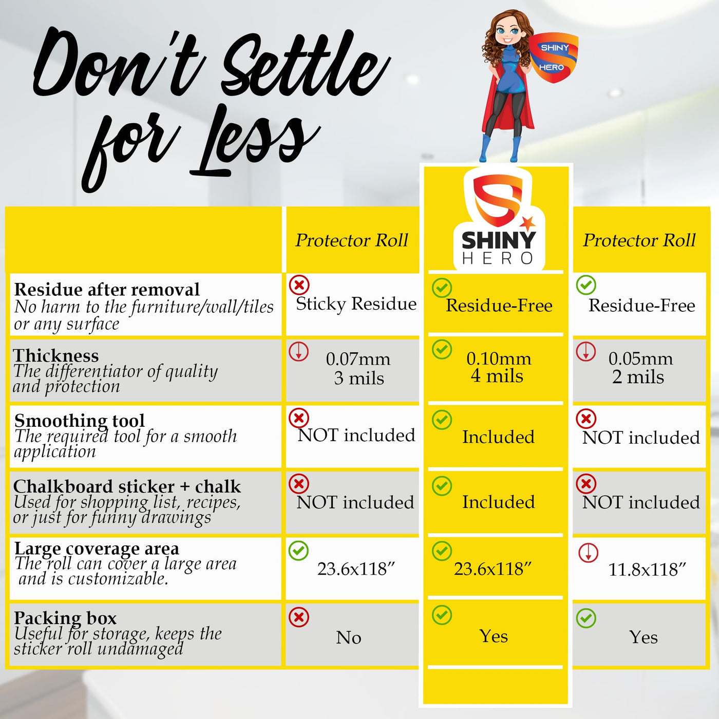 Keep Your Kitchen Countertops And Walls Spotless And Glossy With Our Set Of Clear Wall Protector Splash Guard Film Tape. It Is The Perfect Solution To Guard Areas Near The Electric Or Gas Stove, Under The Sink, From Spills, Stains, Water, Dirt, Salt, And Oil Grease After Cooking, While Providing A Cleaner And Healthier Kitchen. Also, It Provides Optimum Scratch Protection For Furniture, Walls, Shelf Liner, Cabinet, Table, Play Corner, Drawers Or Wardrobe, Refrigerator, Cats And Dogs Wall Protector. Who Would Have Thought This Sticky Transparent Splatter Guard Pet Roll, Could Make Such A Difference For Your Home? Our Set Of Stickers Includes 1 Crystal Clear Self-Adhesive Oil-Proof Sticker, 1 Smoothing Tool, 1 Black Chalkboard Self-Adhesive Sticker, 11.8''X11.8'', 1 Pc Of White Chalk, Instructions Card, Everything Neatly Wrapped In A Box Package For Perfect Storage. The Durable Plastic Sheet Will Apply Easily To Any Smooth Surface As: Wall, Tile, Furniture, Wood, Table, Pantry Shelf Liner, Trash Can, Appliances, Craft, And You Can Remove It Without Leaving Glue Residues. Fixing The Adhesive Clear Protector Roll Is Actually Very Simple. It Requires A Little Patience, But The Installation Of The Protective Self-Adhesive Stickers Is Possible For Everyone. The Cut Line Design From The Detachable Back Of The Stickers And The Smoothing Tool Provided In Our Set Makes Effortless The Task For You. To Make Sure Nothing Can Go Wrong, We Have Included Detailed Instructions In Our Set. Keep In Mind The Surfaces Must Be Dry And Free Of Dust, Grease, Or Other Impurities That May Compromise The Adhesive Strength Of The Material. Our Product Is The Perfect Mix Between Efficiency And Top Quality Material, Helping You Clean Easily And Quickly Various Surfaces From Your House. Click On ''Add To Cart'' Button Now And Get This Amazing New Product!
