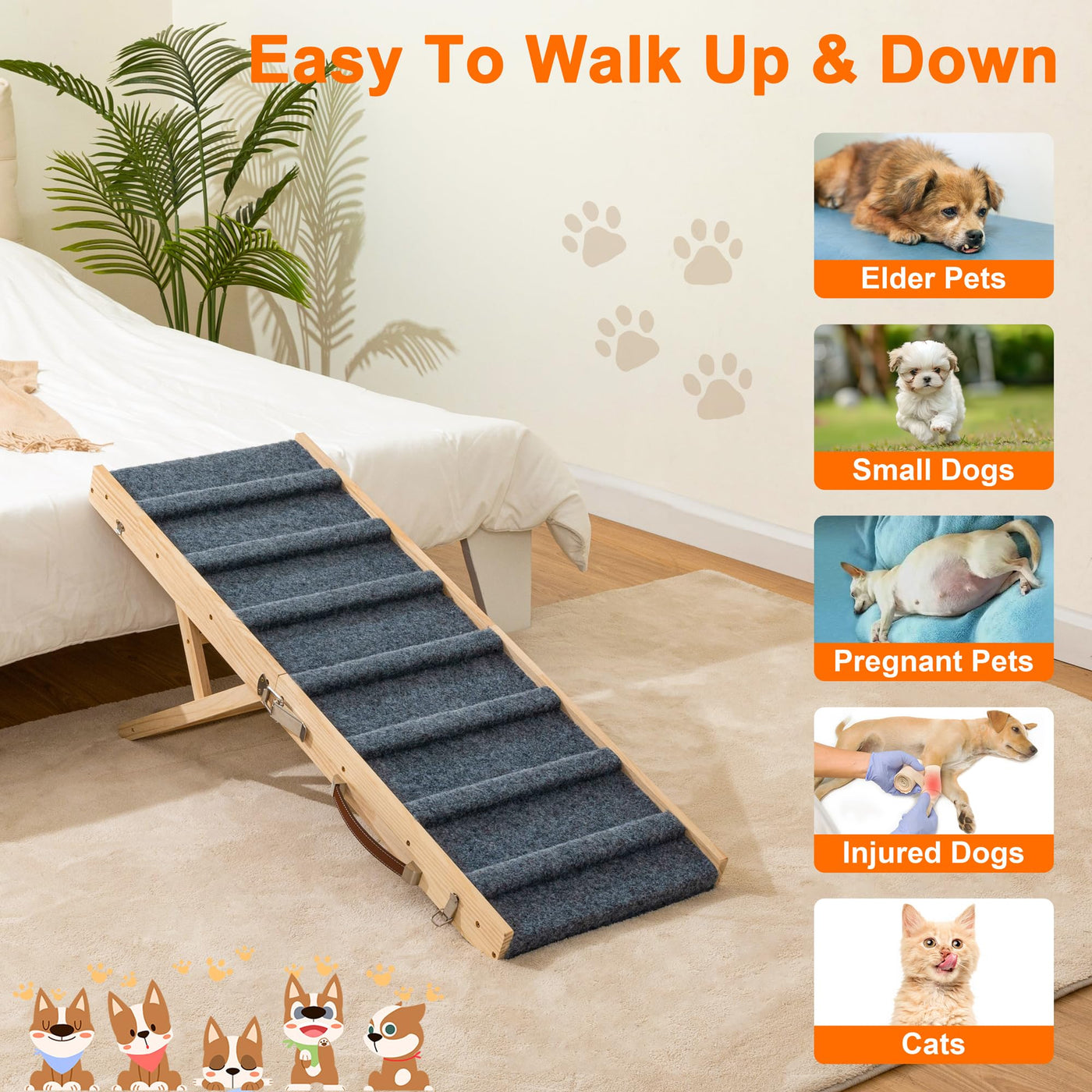 The clearance dog ramp comes in a variety of adjustable heights to help your small pet get in and out of beds, sofas, and cars by simply adjusting the ramp height to suit your needs. This indoor and outdoor non-slip dog ramps for large dogs for small dogs has multiple height-adjustable settings that are compatible with most home furnishings such as sofas, beds, window sills, cars and more. The pet ramps for small dogs has a gradual incline that allows your dog to reach higher ground smoothly. It has multiple non-slip crossbars made of high-traction fabric to prevent slipping or falling while climbing. This maximizes safety for older or disabled dogs with arthritis or mobility issues. Helping your pet climb up a raised bed or sofa with ease, the dog ramp for bed large dog is designed with a gentle slope that reduces muscle and joint tension caused by jumping and relieves stress on paws and joints. With its foldable design, this lightweight compact pet ramp for large dogs can be easily stored in the trunk of a car, under furniture, or in tight spaces. Very practical for pet owners on the go, the dog ramp for high bed can be taken on road trips or camping trips to help your dog get through uneven terrain, or simply used at home to help your dog reach high places. Made from natural pine wood, the folding dog ramp is sturdy and unbreakable, providing reliable support for a long time. It has been independently safety tested to comfortably support pets weighing up to 100 pounds. ramp for dogs bed ramp for dogs outdoor dog ramp dog car ramp for large dogs suv foldable dog ramp large dog ramp for bed dog couch ramp small dog ramp for bed large dog ramp dog ramp for suv dog bed ramps for small dogs doggie ramps for small dogs ramp for dog small dog ramp for couch dog ramps for high beds dog ramp bed dog ramp for small dogs dog ramp for large dogs pet ramps pet ramp for bed pet ramp ramps ramp doggo ramp dog ramp for bed small dog dog bed ramps for large dogs