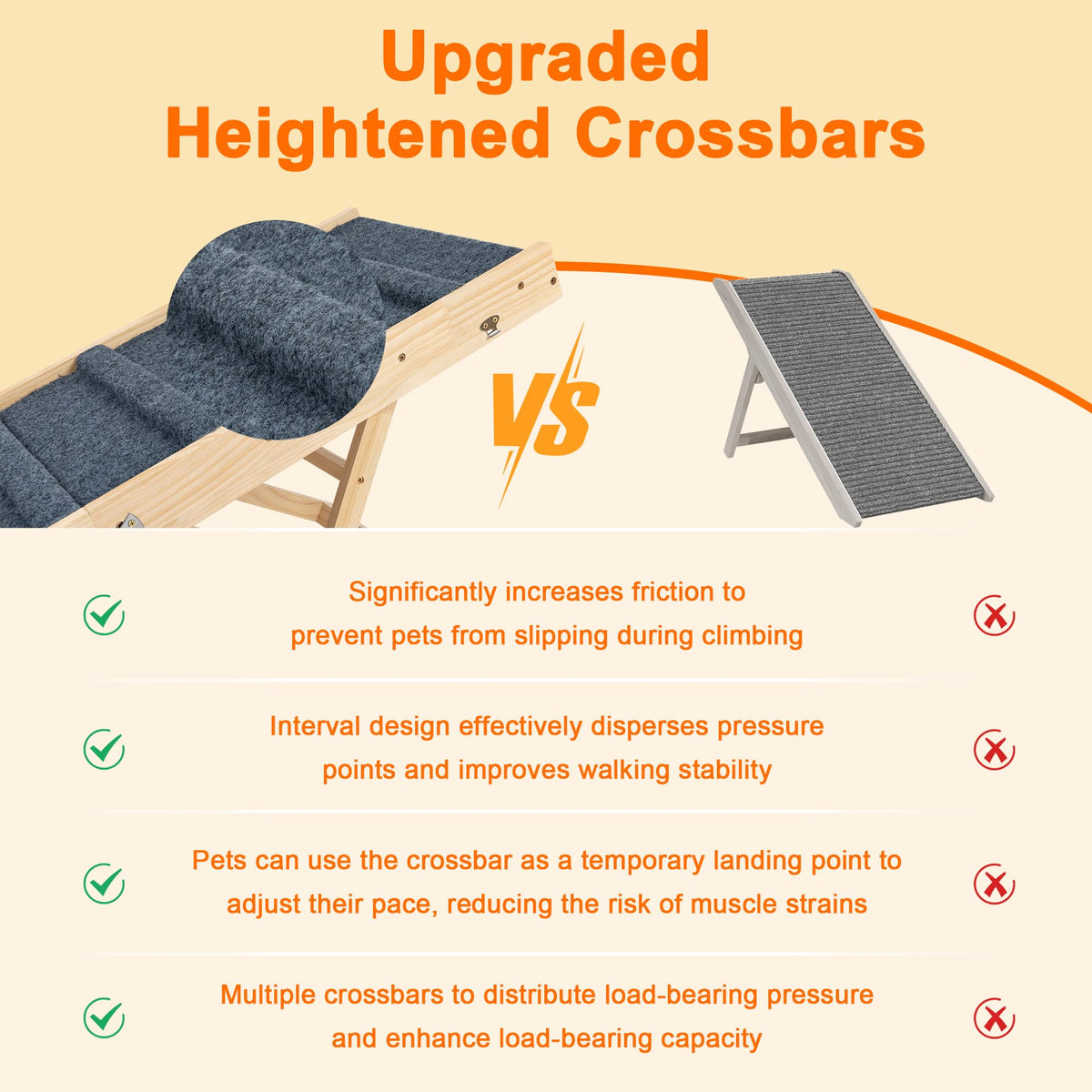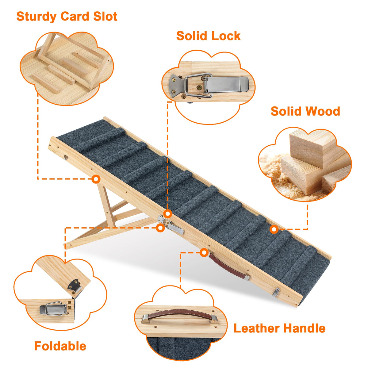 The clearance dog ramp comes in a variety of adjustable heights to help your small pet get in and out of beds, sofas, and cars by simply adjusting the ramp height to suit your needs. This indoor and outdoor non-slip dog ramps for large dogs for small dogs has multiple height-adjustable settings that are compatible with most home furnishings such as sofas, beds, window sills, cars and more. The pet ramps for small dogs has a gradual incline that allows your dog to reach higher ground smoothly. It has multiple non-slip crossbars made of high-traction fabric to prevent slipping or falling while climbing. This maximizes safety for older or disabled dogs with arthritis or mobility issues. Helping your pet climb up a raised bed or sofa with ease, the dog ramp for bed large dog is designed with a gentle slope that reduces muscle and joint tension caused by jumping and relieves stress on paws and joints. With its foldable design, this lightweight compact pet ramp for large dogs can be easily stored in the trunk of a car, under furniture, or in tight spaces. Very practical for pet owners on the go, the dog ramp for high bed can be taken on road trips or camping trips to help your dog get through uneven terrain, or simply used at home to help your dog reach high places. Made from natural pine wood, the folding dog ramp is sturdy and unbreakable, providing reliable support for a long time. It has been independently safety tested to comfortably support pets weighing up to 100 pounds. ramp for dogs bed ramp for dogs outdoor dog ramp dog car ramp for large dogs suv foldable dog ramp large dog ramp for bed dog couch ramp small dog ramp for bed large dog ramp dog ramp for suv dog bed ramps for small dogs doggie ramps for small dogs ramp for dog small dog ramp for couch dog ramps for high beds dog ramp bed dog ramp for small dogs dog ramp for large dogs pet ramps pet ramp for bed pet ramp ramps ramp doggo ramp dog ramp for bed small dog dog bed ramps for large dogs