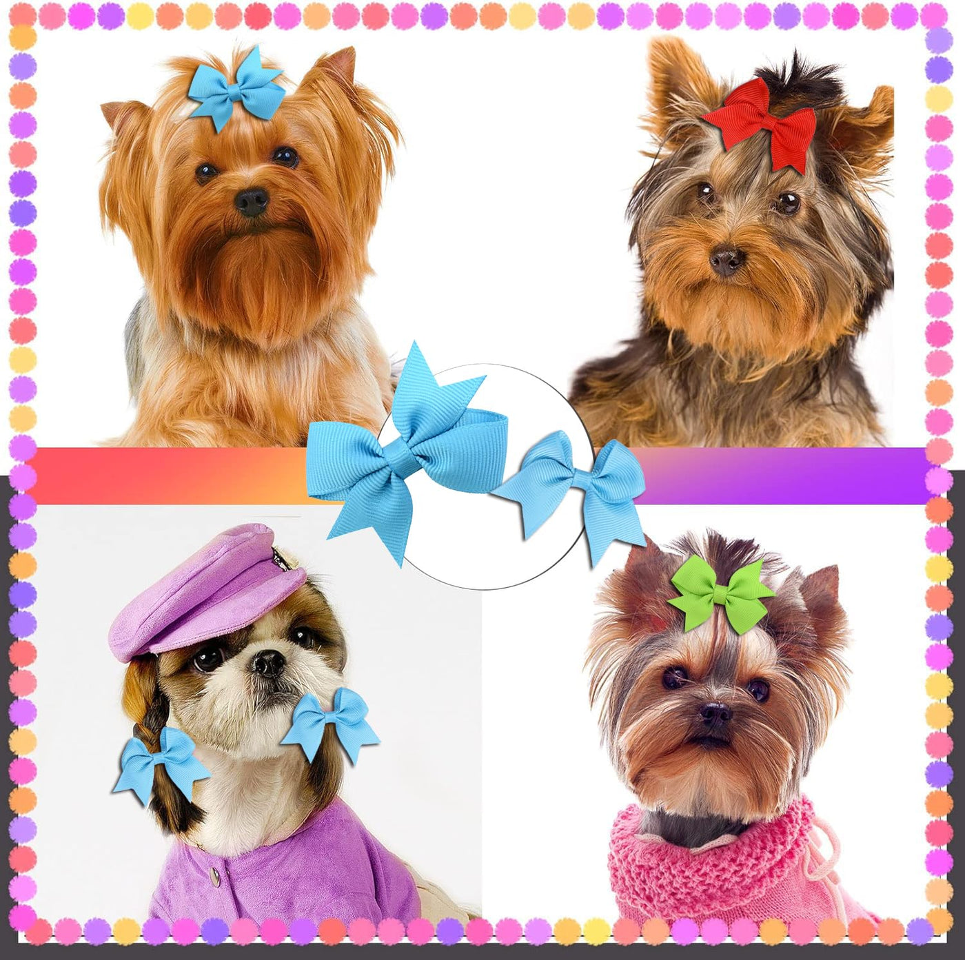 Clipband Puppy Dogs Hair Barrettes Bows With Rubber Bands,Hair Accessories Bow Pet Grooming Cute Pet Small Hair Bowkno