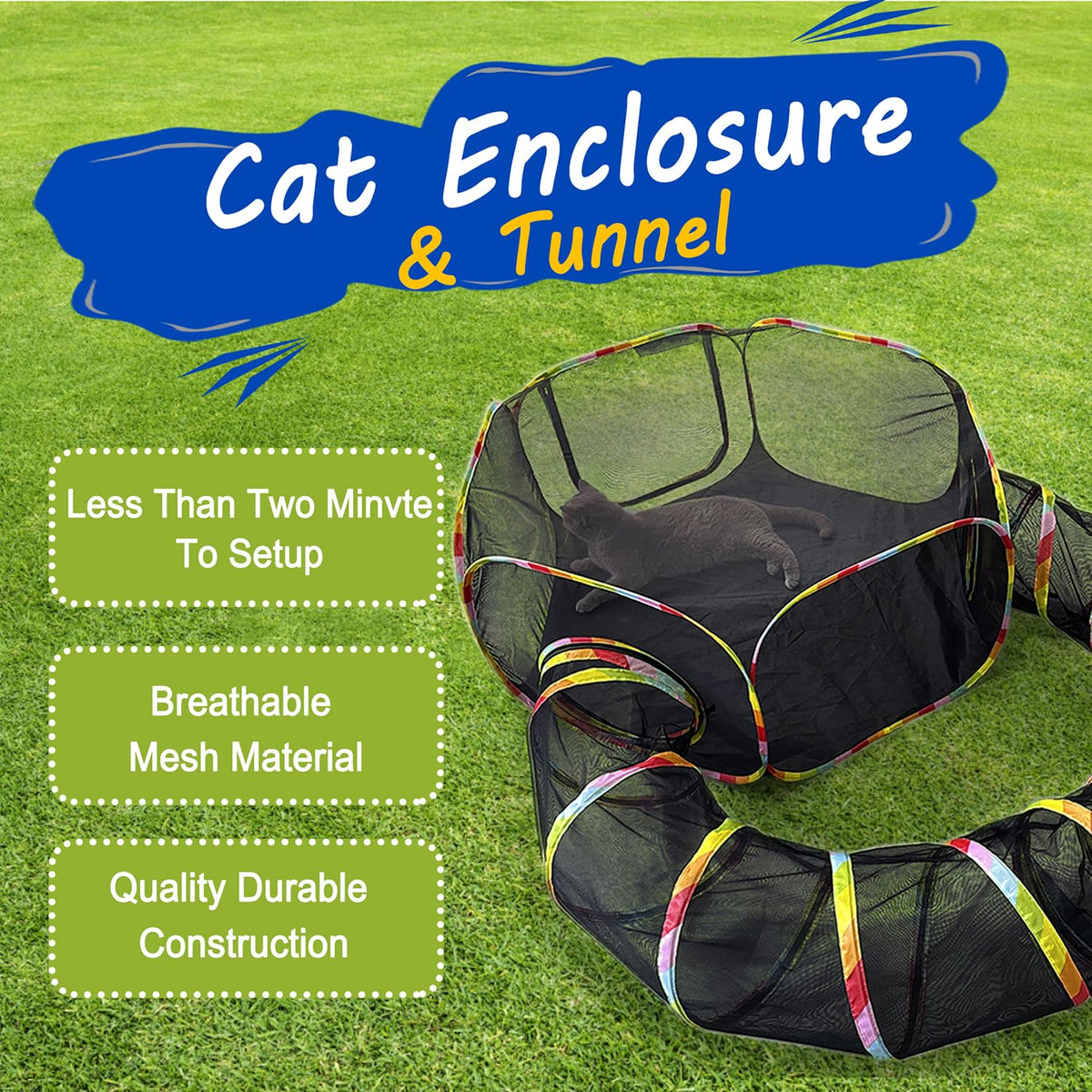 Clkhowl Outdoor Cat Enclosure, Portable Cat Tents For Outside, Cage Free Outside Cat Playpen Pet Enclosure, Cat Tunnel Outdoor P