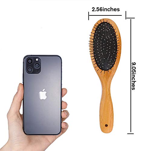 NATURAL ECO FRIENDLY STURDY MATERIAL: This grooming metal pin brush is made of renewable bamboo, effectively protects the environment. | ERGONNMIC NON-SLIP DESIGN: The bamboo smooth handle keeps my hands comfortable and safe, easy to held. | PROFESSIONAL GROOMING: Stainless steel pin head brush is suitable for small puppy havanese andis yorkies ,and large German shepherd dog,gets rid of matts ,long & short loose hairs and dirt, removes shedding Tangles, Dematting coat ,Helps my lover shampoo massaging bathing and self-cleaning, great for increasing blood circulation, leaves my pets fur soft and shiny. | LIGHT WEIGHT AND PERFECT SIZE: 9.06inches length and 2.56inches wide, 0.19Ib weight.