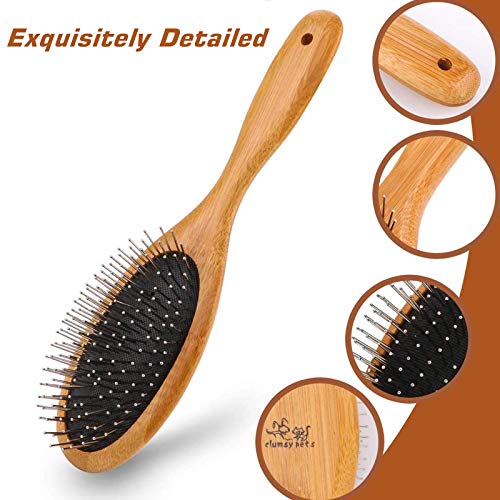 Clumsypets Dog & Cat Ball Pin Slicker Grooming Brush With Bamboo Handle For Pets Massage Bath And Removes Mats Loose Fur Hairs