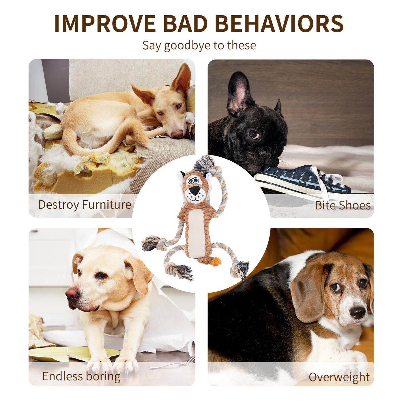 The Cneeeeeb Squeaky Dog Toys Are The Perfect Interactive And Durable Chew Toys For Dogs Of All Sizes. These Toys Are Designed To Provide Endless Entertainment And Satisfy Your Dog'S Natural Urge To Chew, Tug, And Play. Made From High-Quality Corduroy And Cotton Rope, These Toys Are Soft, And Safe For Your Furry Friend To Play With. The Rope-Infused Design Adds Extra Durability, Making Them Perfect For Even The Most Enthusiastic Chewers. The Main Material Used In These Toys Is Corduroy And Cotton Rope, Which Not Only Ensures Their Durability But Also Makes Them Comfortable To Hold And Play With. The Main Material Is Soft And Gentle On Dogs' Teeth And Gums, Ensuring A Safe Chewing Experience. Each Toy Is Filled With Safe Pp Cotton, Providing Additional Comfort And Support During Playtime. The Plush Filling Also Enhances The Toy'S Squeaking Sound, Adding An Interactive Element That Will Keep Your Dog Entertained For Hours. One Of The Standout Features Of These Toys Is The Advanced Chinese Embroidery, Which Adds An Elegant And Stylish Touch To The Overall Design. This Attention To Detail Sets These Toys Apart From Others On The Market, Giving Them A Unique And Appealing Look. With Approximate Dimensions Of 9.8*3.1*16.1 Inches, These Toys Are Suitable For Small, Medium, And Big Dogs. Whether Your Dog Loves To Play Fetch, Engage In A Game Of Tug-Of-War, Or Simply Enjoys Chewing, These Toys Have Got You Covered. Overall, Squeaky Dog Toys Are The Perfect Combination Of Fun, Durability, And Safety. Your Furry Friend Will Love Playing With These Rope-Infused Lion Chew Toys, And You Can Rest Assured That They'Re Made Of High-Quality Materials, But Not For The Harshest Chewers. The Squeaky Sound Bag Placed Inside Can Attract The Dog'S Attention And Make The Dog Love To Play With The Toy,Crinkle Paper Stuffed Plush Dog Toy