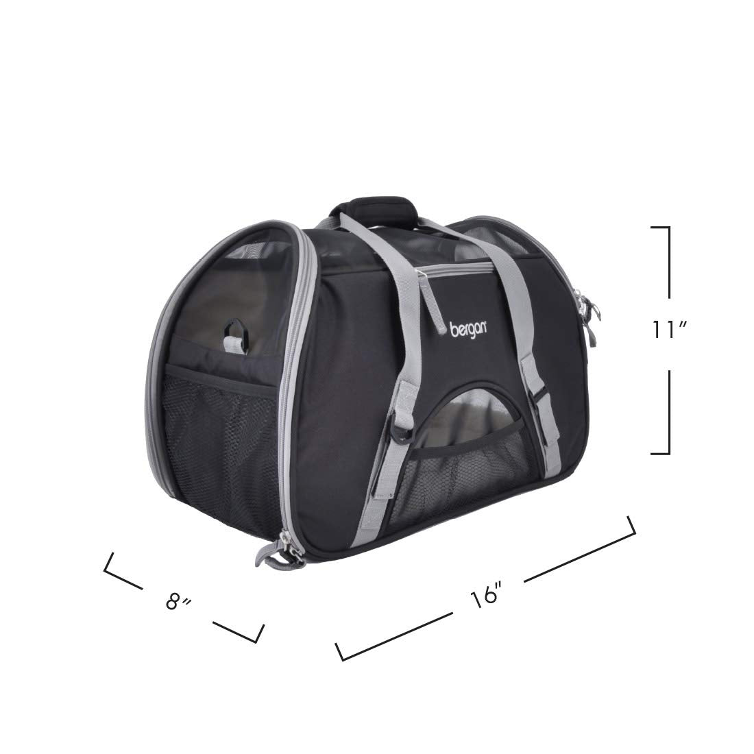 Coastal Pet Bergan Comfort Carrier - Safe And Comfortable For Dog & Cat Travel - Airline Friendly Soft And Breathable Carrier For Pet Owners - Black & Grey, 16' X 8' X 11'