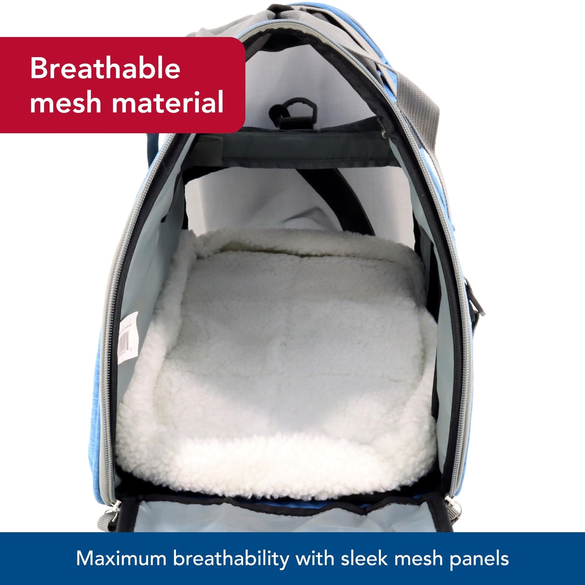 Bergan Carrier: Help your pet travel in comfort with the Bergan Comfort Carrier; mesh panels allow for maximum breathability and a washable fleece travel bed offers cushioned support | Pet Carrier Dimensions: The small size of this Bergan cat & dog carrier is 16 x 8 x 11 inches, offering the perfect amount of space for your furry friend | Airline-Friendly Soft Pet Carrier: Take your cat or dog anywhere with this pet travel carrier; it's compatible with many airlines because of its size | Safe Dog & Cat Carrier: The Bergan Comfort Carrier is equipped with a seat belt loop for secure car travel and an adjustable shoulder strap for comfortable carrying | Coastal Pet Cares: We design and deliver quality products that people trust for the pets they love