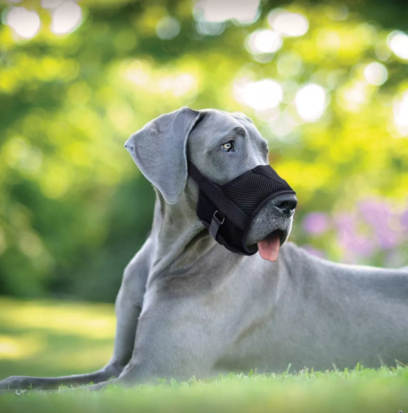 The Best Fit Adjustable Comfort Dog Muzzle is designed for the perfect fit when temporarily muzzling your dog. Available in XSM 3-3.75', SML 4.5-6', MED 6.5-9', LRG 8.25-10.5' and XLG 10-13'. Our muzzle features a loop and hook chin strap that allows for a custom fit and elastic across the top that helps prevent the muzzle from riding up into the dog's eyes. This dog muzzle comfortably allows the dog to drink water and pant.