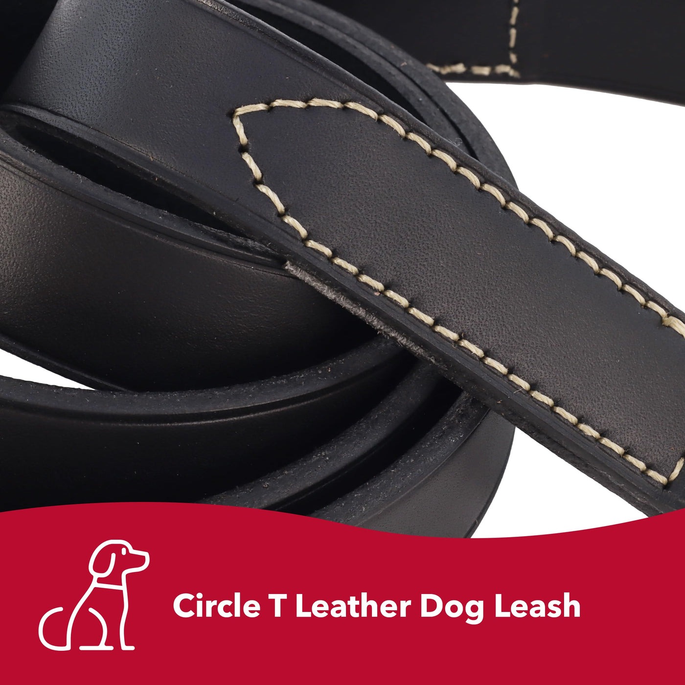 Coastal Pet Circle T Oak Tanned Leather Dog Leash - Durable Dog Leash Perfect For Leash Training - Comfortable Leash For Puppies & Dogs Made From Full-Grain Leather - Black, 3/8' X 6'