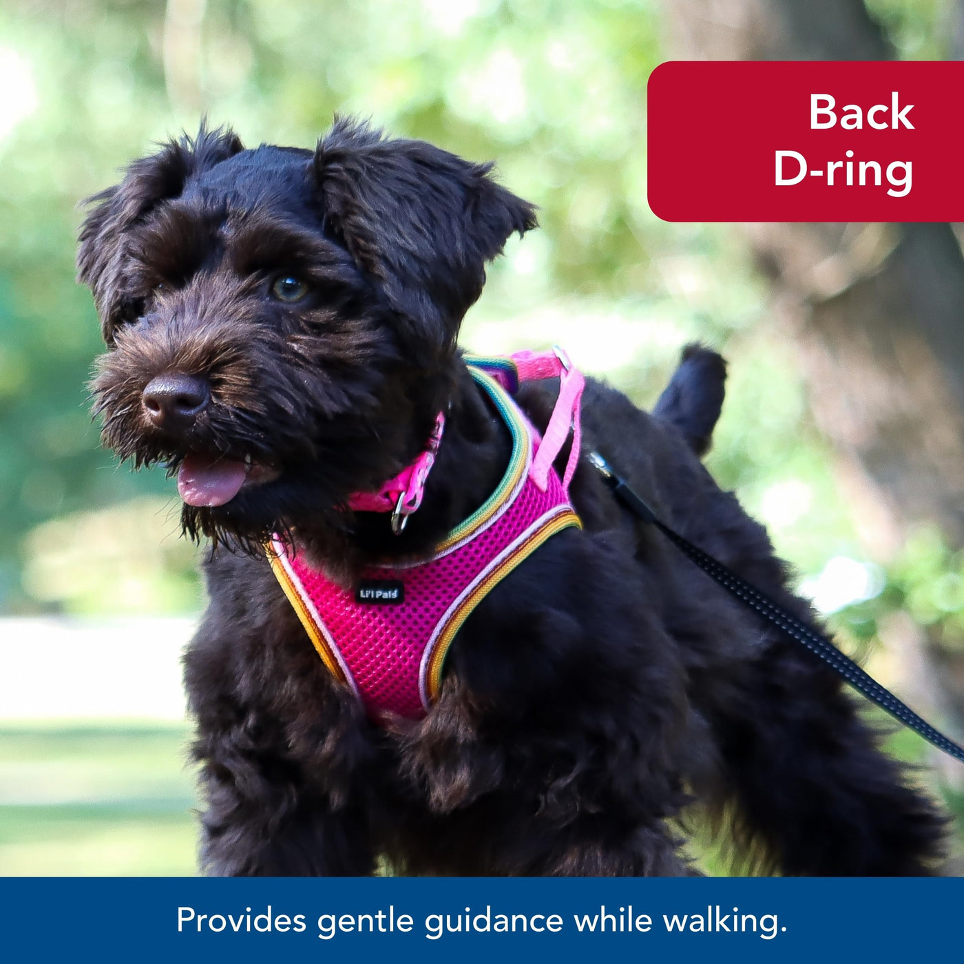 Keep your little dog cool and comfortable on walks with the Li’l Pals Comfort Mesh Dog Harness. This cooling dog vest is made from breathable mesh materials that prevent your small dog from becoming overheated while walking. With adjustable and unique sliders, this step-in harness always provides the perfect fit for your small dog and puppy. This leader puppy harness provides gentle guidance while walking through a back D-ring, making this easy design great for fussy dogs. Use this soft, lightweight harness on your next walk with your little pooch.Founded in Ohio in 1968, Coastal Pet is committed to producing and delivering quality products that people trust for the pets they love. Coastal Pet is also a huge part of establishing industry standards for product safety, strength and durability throughout the years. We make products for dogs and cats of every size, shape and lifestyle. We've got the collars, leashes, harnesses and toys that keep them smiling. We also offer products for grooming, traveling and feeding your pets through brands like Bergan and Safari by Coastal.