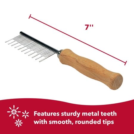 Q: What materials is the Coastal Pet Safari Cat Shedding Comb made from?A: The Coastal Pet Safari Cat Shedding Comb is made with a contoured wooden handle and sturdy stainless steel teeth. This combination of materials provides durability and comfort, making grooming an easy task for pet owners.