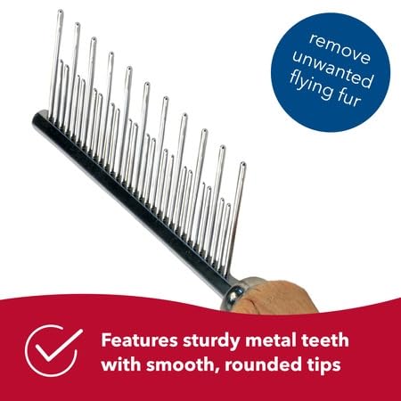 With a contoured wooden handle and dual-length rounded teeth, the Safari Cat Shedding Comb is the perfect cat grooming comb for long-haired and short-haired cats. The long teeth on the comb act as an undercoat rake, while the shorter teeth collect the loose hair from the topcoat. With this deshedding comb, you can remove unwanted flying fur and prevent hairballs in the future. The cat comb's sturdy metal teeth have smooth, rounded tips that prevent irritation of your cat’s sensitive skin. Regular brushing will massage the skin and stimulate the production of natural oils for a shiny, healthy coat. For long-haired cats, brush daily; for short-haired cats, brush once a week.Founded in Ohio in 1968, Coastal Pet is committed to producing and delivering quality products that people trust for the pets they love. Coastal Pet is also a huge part of establishing industry standards for product safety, strength and durability throughout the years. We make products for dogs and cats of every size, shape and lifestyle. We've got the collars, leashes, harnesses and toys that keep them smiling. We also offer products for grooming, traveling and feeding your pets through brands like Bergan and Safari by Coastal.