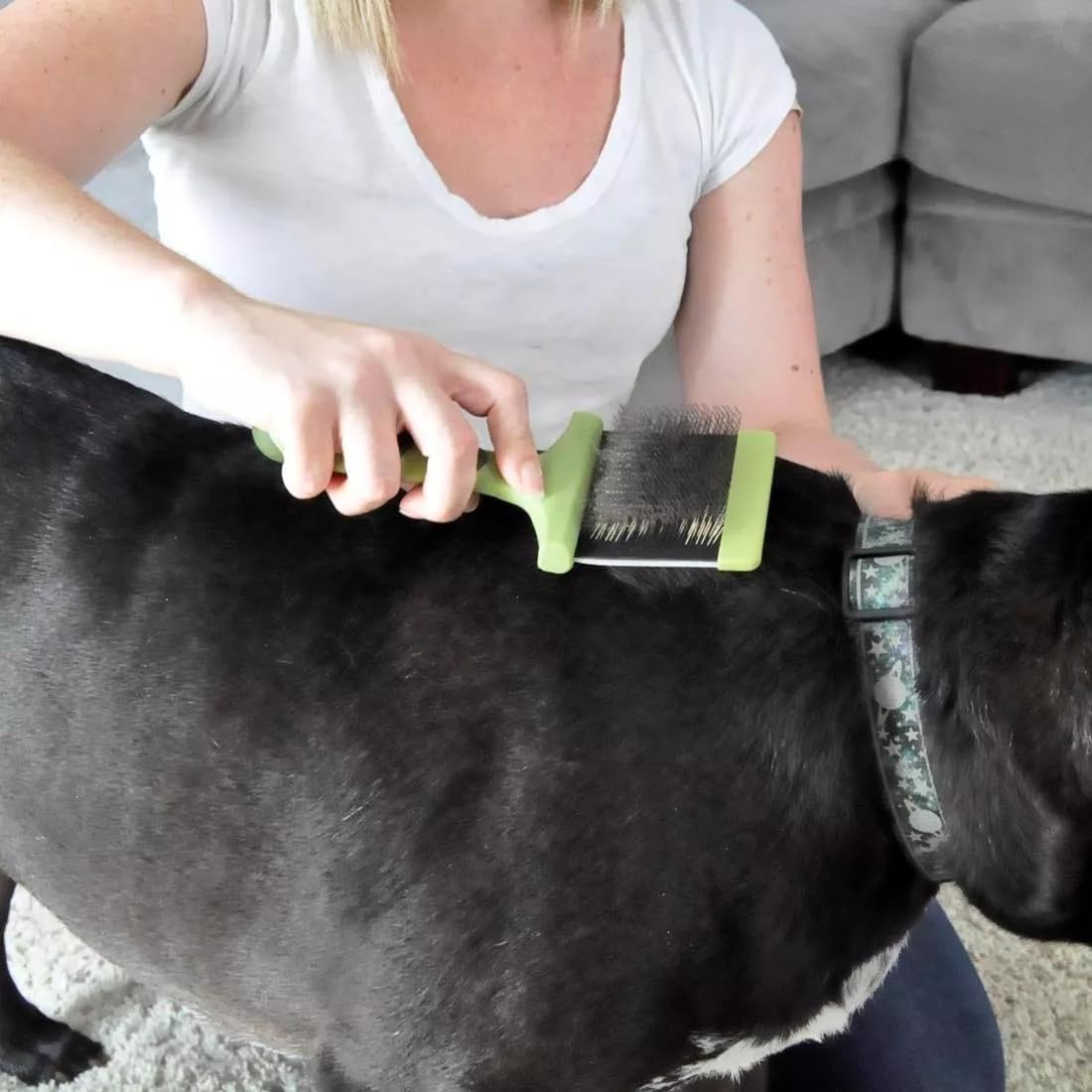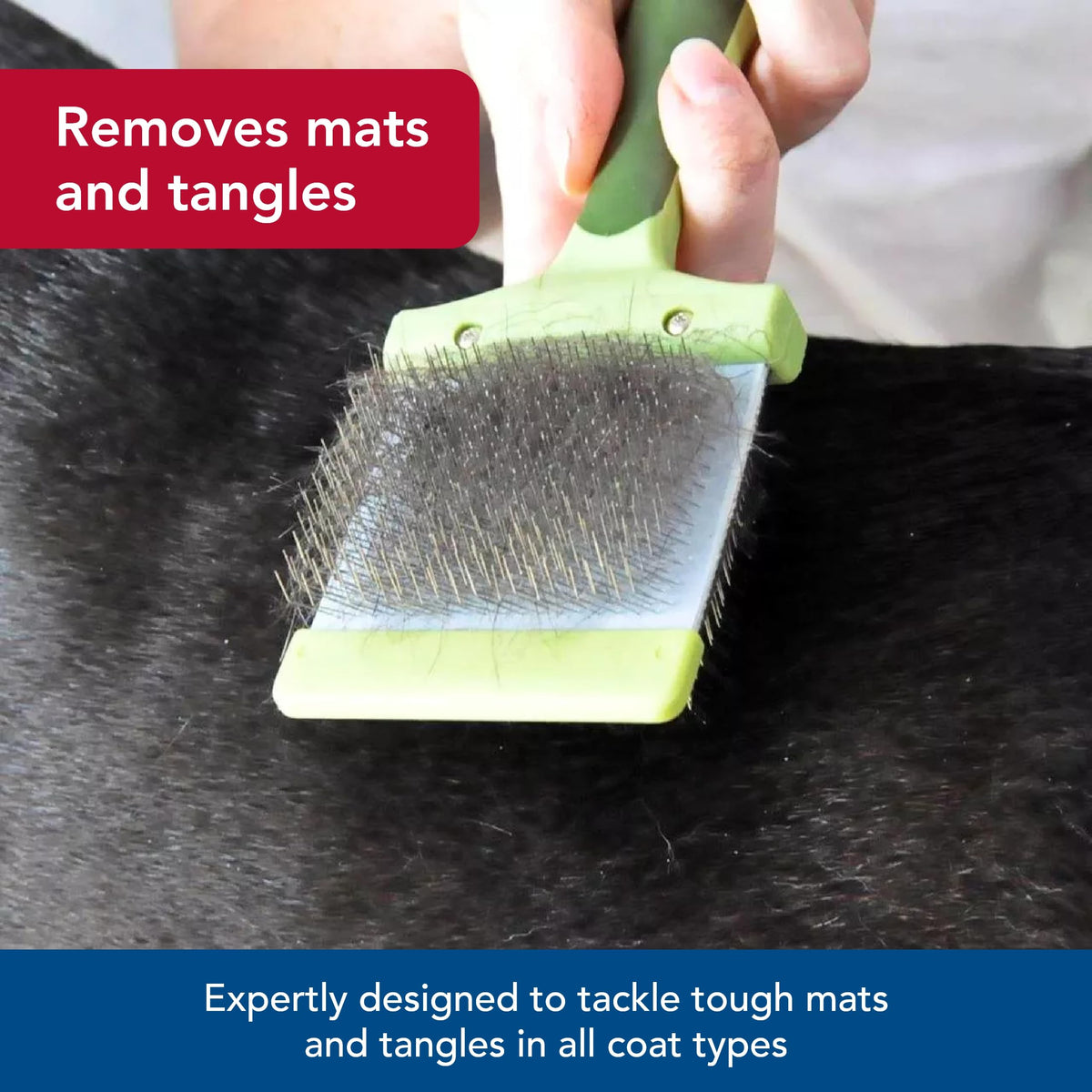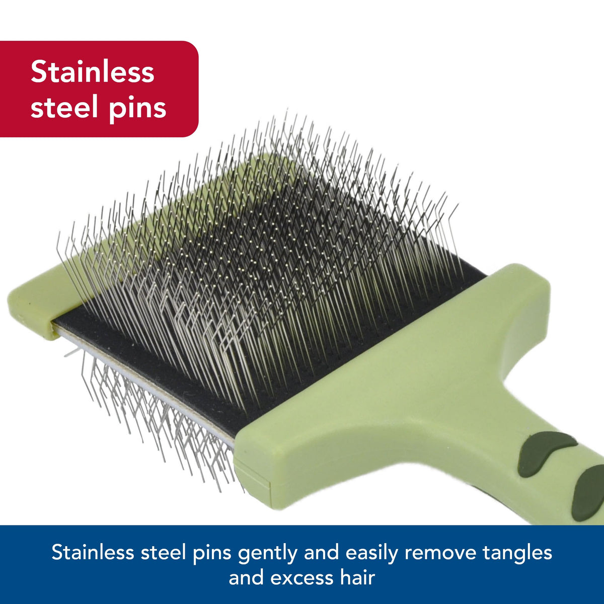 Dog Brush for Shedding: Stainless steel pins reduce dog shedding to keep your dog and house clean | Wire Dog Brush: This dog brush has a flexible head that fits to a dog's body for easy grooming | Gentle Cleaning: This pet detangler brush for dogs with short and long hair removes excess hair | Small Dog Brush: This dog hair brush is made for small breeds and features a grip handle for owners | Coastal Pet Cares: We design and deliver quality products that people trust for the pets they love