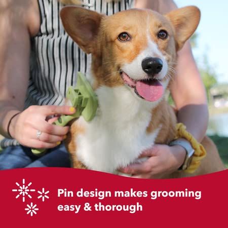 Q: How does the Coastal Pet Safari Dog Self-Cleaning Slicker Brush work?A: The Coastal Pet Safari Dog Self-Cleaning Slicker Brush features retractable stainless steel pins that gently remove mats, tangles, and loose hair from your dog's coat. With a simple push of a button, the pins retract for easy cleanup, making grooming hassle-free.