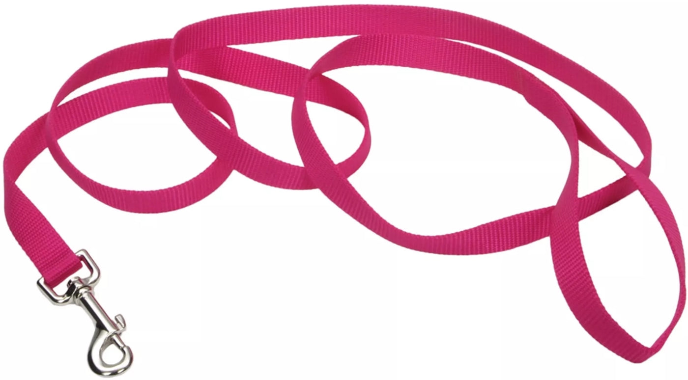 Q: What are the dimensions of the Coastal Pet Single-Ply Dog Leash?A: The dimensions of the leash are 5/8 inches in width and 6 feet in length, providing ample space for comfortable handling while walking your dog.