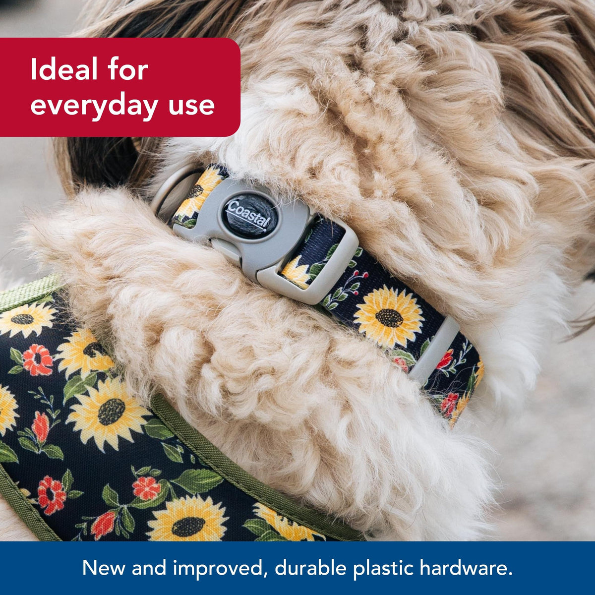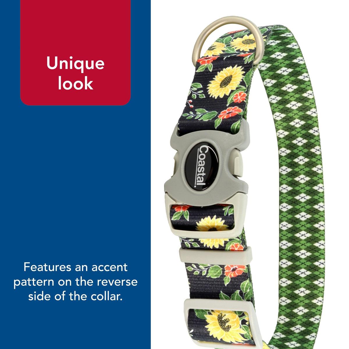 Coastal Pet Sublime Adjustable Dog Collar - Adjustable Plastic Buckle - Vibrant & Colorful Dog Collar With Fade-Resistant Patterns - Sunflower With Green Argyle, Medium - 1' X 12'-18'
