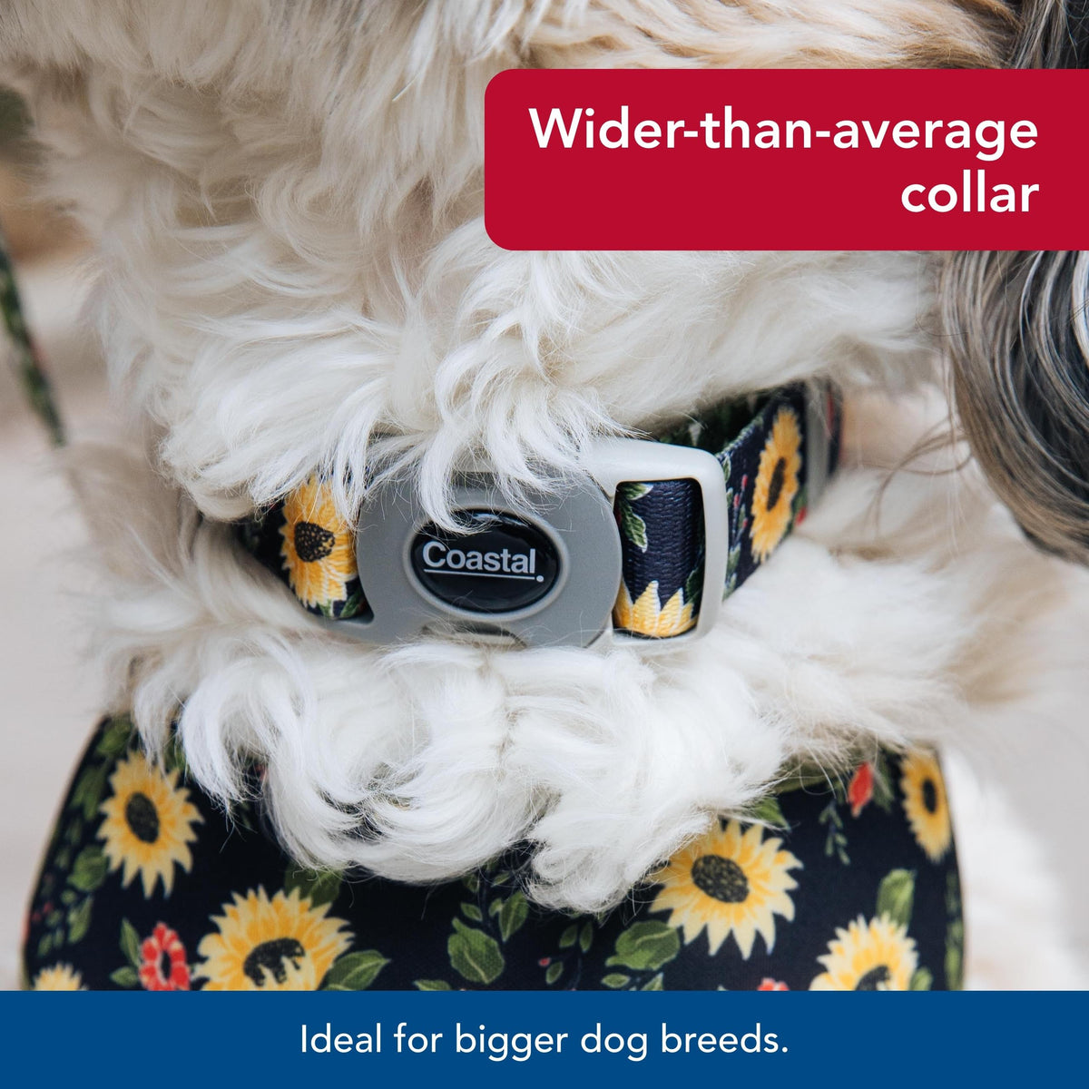 The Sublime Adjustable Dog Collar is the ideal blend of style, comfort, and durability. The wide size ensures a perfect, snug fit for your beloved pet. The bold and vibrant pattern is more than just eye-catching; it's a testament to your pet's lively disposition. It also features an accent pattern on the reverse side, adding a stylish twist to the classic dog collar and ensuring your pet stands out from the pack. The Sublime Adjustable Dog Collar has been fitted with a sturdy plastic buckle. This buckle is not just a fastening device; it is a critical element ensuring a secure fit, a feature that is absolutely crucial considering the active lifestyle of your dog. Founded in Ohio in 1968, Coastal Pet is committed to producing and delivering quality products that people trust for the pets they love. Coastal Pet is also a huge part of establishing industry standards for product safety, strength, and durability throughout the years. We make products for dogs and cats of every size, shape, and lifestyle. We've got the collars, leashes, harnesses, and toys that keep them smiling. We also offer products for grooming, traveling, and feeding your pets through brands like Bergen and Safari by Coastal.