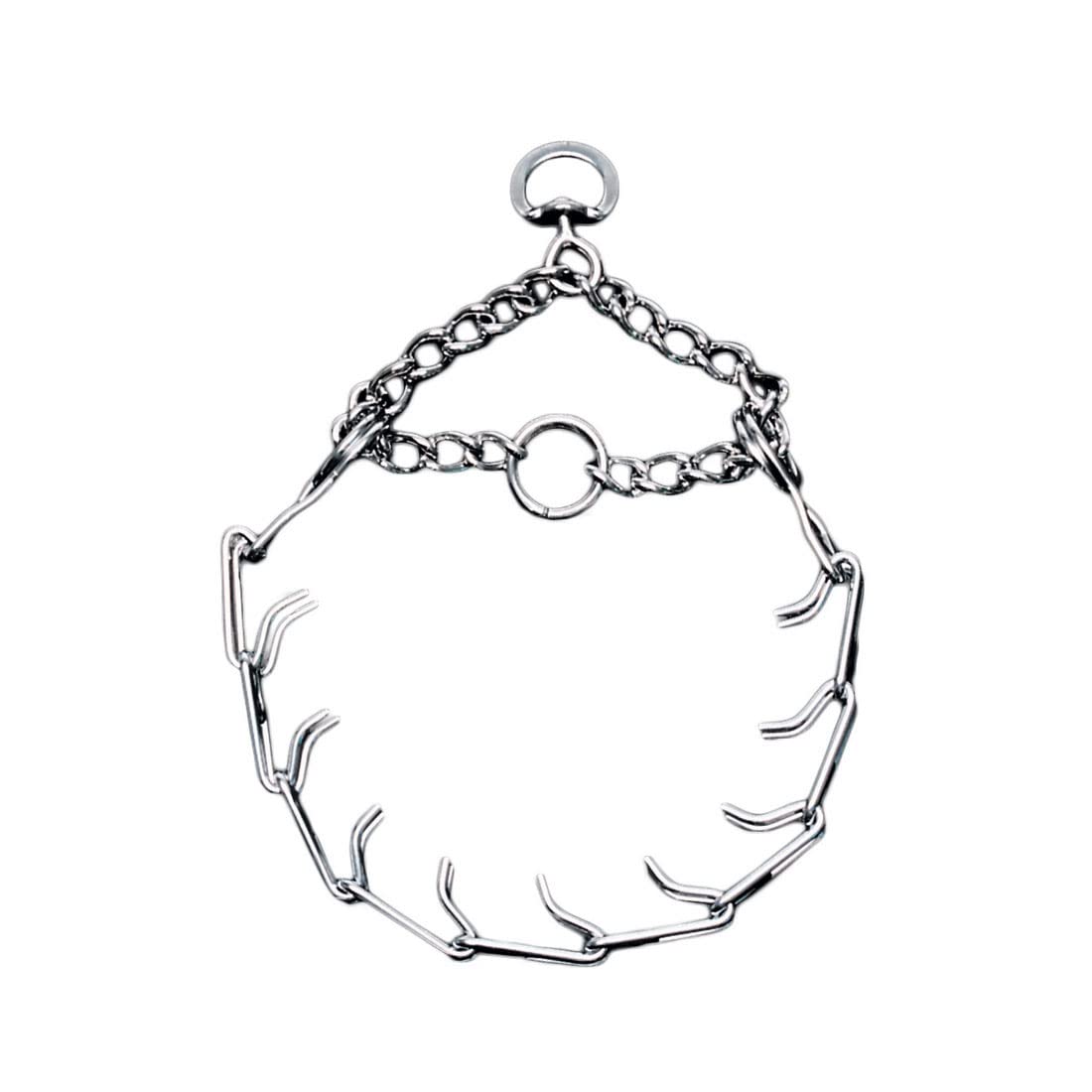 The Titan Chain Training Prong Collar is electric welded and chrome plated for maximum strength and durability. It will not tarnish, rust or break. Featuring a link closure style, prong links unfasten for easy collar placement and removal. Extra links and vinyl comfort tips are available. Available in 2.0 mm x 14', 3.0mm x 18', 3.3 mm x 20' and 4.0 mm x 22'. Chain training prong collars are safe, effective training tools with proper use. They are not to be used for tie out.