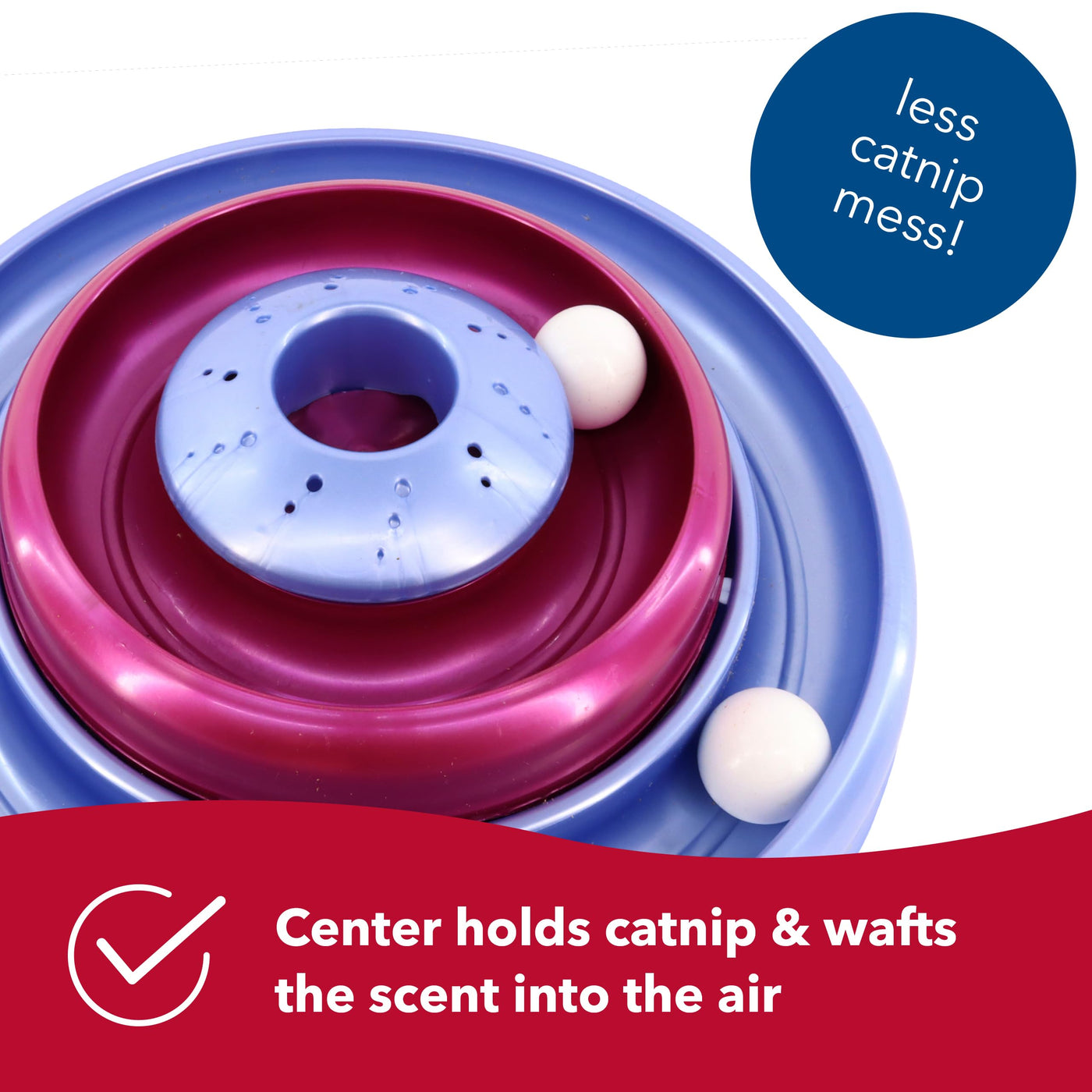 Cut the mess of catnip with the Turbo Catnip Cyclone Cat Toy. The Cyclone holds catnip neatly in its center and generates steady air currents to waft the scent of catnip throughout the air. The air currents help amplify the energizing effects of catnip for your cat. The center sits within a round cat toy ball track, making it a great catnip toy to get your cat moving and playing. You can use this cat toy ball track as a standalone toy or add it to the Turbo Scratcher to create a Catnip Hurricane. This game encourages active play and exercise for any cat or kitten.Founded in Ohio in 1968, Coastal Pet is committed to producing and delivering quality products that people trust for the pets they love. Coastal Pet is also a huge part of establishing industry standards for product safety, strength and durability throughout the years. We make products for dogs and cats of every size, shape and lifestyle. We've got the collars, leashes, harnesses and toys that keep them smiling. We also offer products for grooming, traveling and feeding your pets through brands like Bergan and Safari by Coastal.